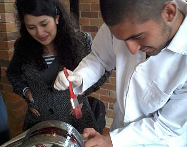 Los estudiantes tuvieron la oportunidad de hacer una pequeña práctica en la técnica de tintas penetrantes, una de las técnicas para el control de calidad de materiales, en este caso de uniones soldadas, donde interactuaron con cupones de prueba de soldadura preparados especialmente para la ocasión, mostrándoles las ventajas de la técnica y sus fundamentos.